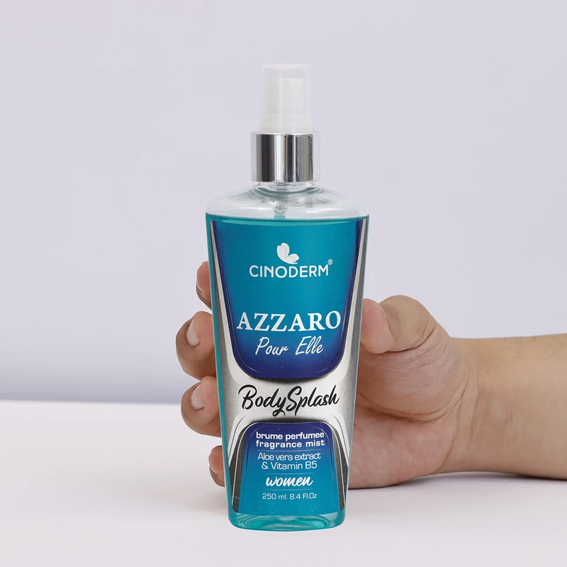در ساختار بادیاسپلش عطری سینودرم از آب دیونیزه، الکل شیرین، عطرهای طبیعی و ترکیبات آبرسان پوست (گلیسیرین و آلوئهورا) استفاده شده است. این محصول به عنوان خوشبوکننده، به صورت مستقیم روی پوست بدن استفاده میشود. پس اگر میخواهید به جای داشتن لباسهای خوشبو، پوست بدنتان معطر باشد، از این محصول استفاده کنید. رایحه آزارو پور اله گرم و شیرین است و در فصول مختلف حس دلربایی برای بانوان ایجاد میکند. بادیاسپلش عطری سینودرم با آبرسانی مناسب، موجب شفافیت، نرمی و شادابی پوست میشود. رایحهی استفاده شده در ساختار آنها در منافذ پوست نفوذ کرده و باعث خوشبو نگهداشتن بدن برای مدت طولانی میشود که یکی از مزایای آن خوشبو ماندن بدن، هنگام برقراری رابطهی جنسی است. همچنین الکل (الکل شیرین) استفاده شده در این محصولات فاقد مواد تلخکننده است و در تماسهای جنسی تلخی الکل احساس نمیشود. گرچه به لحاظ ساختاری کمی شبیه به اسپریهای خوشبو کننده هستند، اما مانند اسپریها، در ترکیبات آنها از گاز استفاده نشده است. به همین دلیل میزان پخش بوی خوش بعد از استفاده از آنها به نسبت اسپریهای خوشبو کننده، کمتر است. همچنین نسبت به ادکلنها درصد اسانس کمتری دارند و به همین دلیل حساسیت کمتری ایجاد میکنند و به راحتی روی پوست اسپری میشوند، بهتر است بلافاصله بعد از استحمام درحالیکه پوست بدن هنوز مرطوب است مقدار مناسبی از محصول را روی پوست اسپری نمائید.